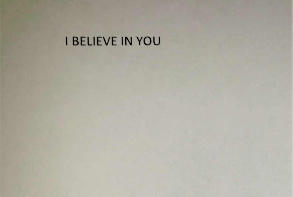 There was one line on the paper. It read, “I BELIEVE IN YOU”.